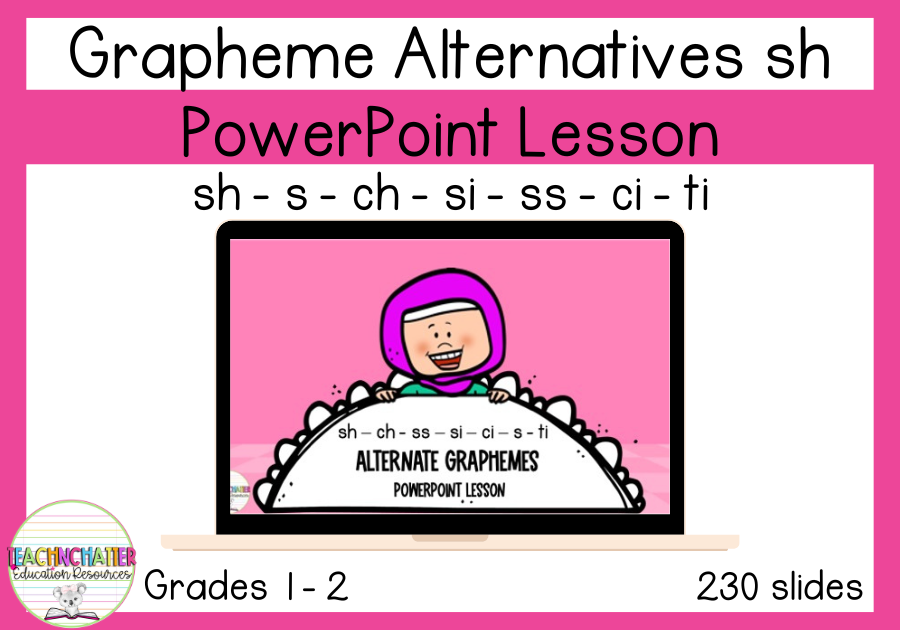 Alternative graphemes for sh - A direct instruction lesson including the graphemes; sh, ch, ss, ci, si and ti.