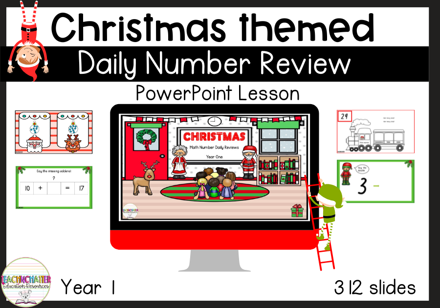 Engage your Grade 1 students with this festive, interactive PowerPoint lesson! This 312-slide resource covers key number concepts, including recognition, subitising, skip counting, addition, subtraction, place value, doubles, and more. Perfect for Christmas, it includes learning intentions, step-by-step instructions, and interactive elements. Use it as a full warm-up or targeted practice.
