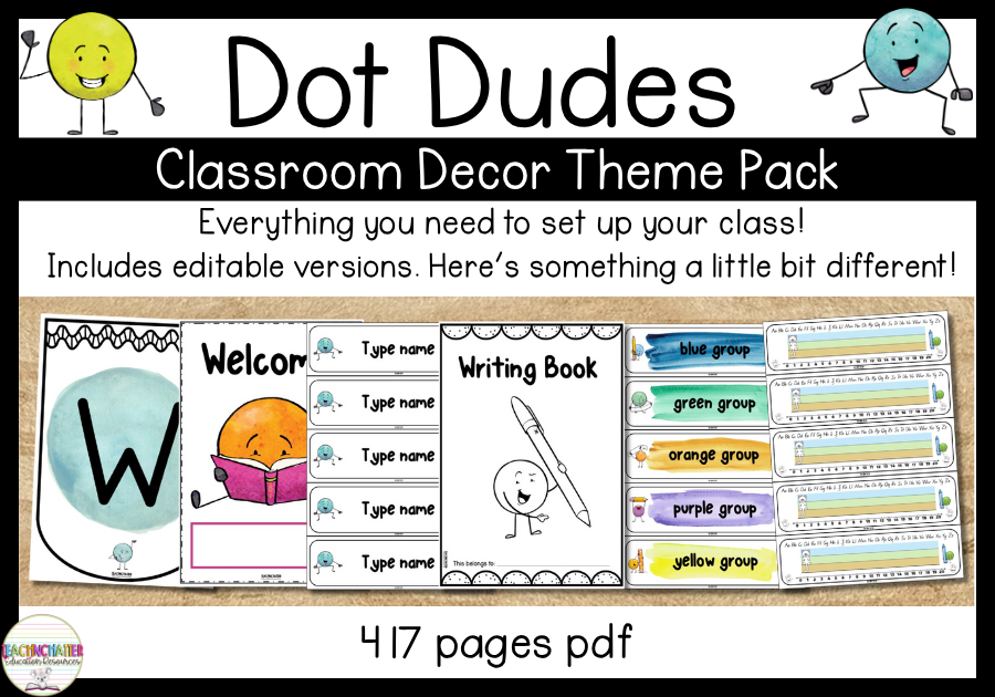Dot Dudes Editable Classroom Decor Pack | 418 Pages of Printable Displays, Labels & Charts - This 418-page Dot Dudes classroom decor pack includes editable welcome banners, desk strips (A–Z, 1–20), alphabet charts, notes home, calendar cards, labels, student badges, birthday charts, certificates, display signs, group tags, to-do lists & more. Fun, quirky, and perfect for full classroom setup. For any year level!